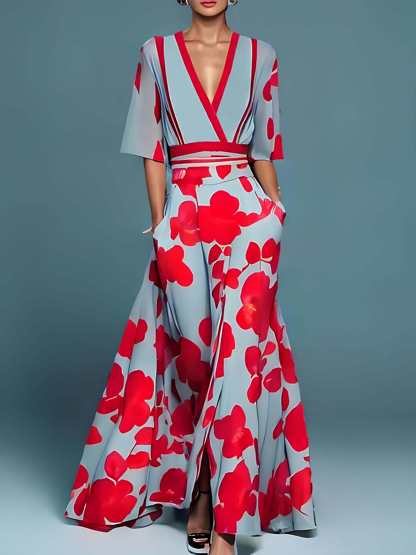 Sofia | Klasyczna Długa Sukienka Kwiatowa